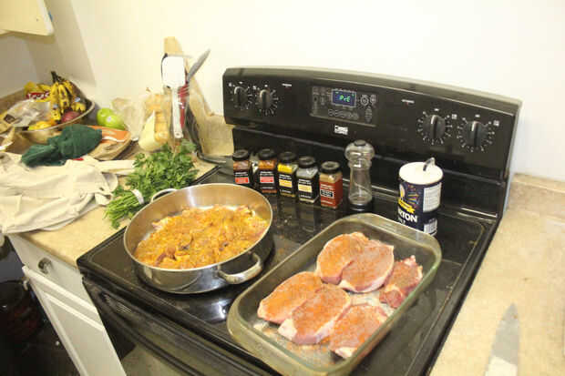 Paso 2: Ensalada de carne de cerdo-temporada y asado las chuletas
