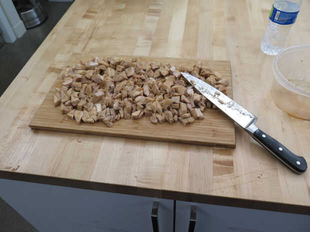 Trocear la carne de asado en trozos tamaño bocado y añadir un poco bebida.