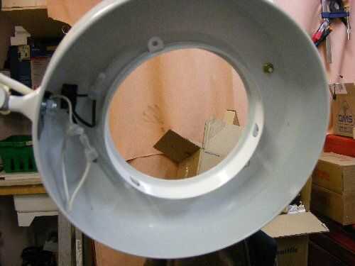 Desechar la pieza de metal de reflector blanco completa con enchufe y lámpara de arranque parte (mina era calor shrinked en negro), conservando la mayor parte del cable.