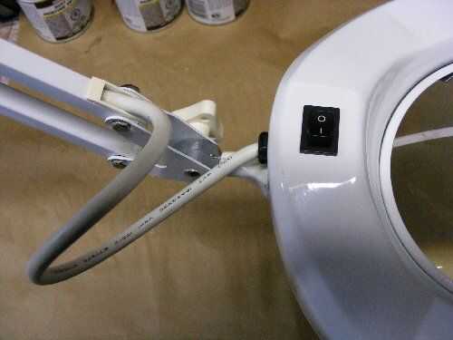 Retire y guarde la lámpara tres clips y tornillos, teniendo cuidado de las lentes de vidrio pesado, mina no se rompió de alguna manera cuando me cayó en el piso de cemento. Desde este punto de la lámpara unidad principal no es lo suficientemente pesada para contrarrestar los muelles de brazo y aumentará.