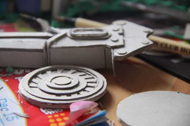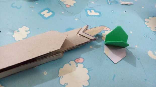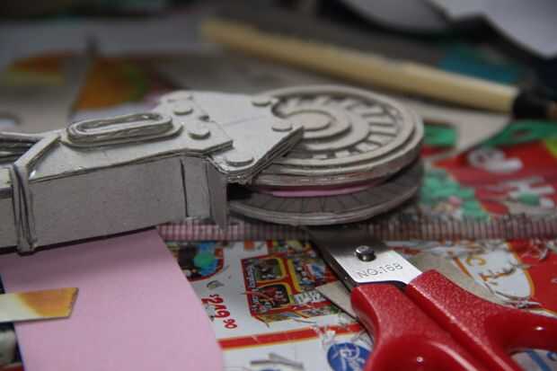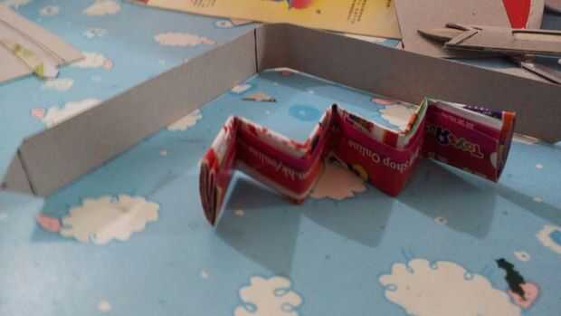 8. construcción de la segunda cámara de retracción (R2), material en papel para llenar la habitación.