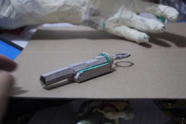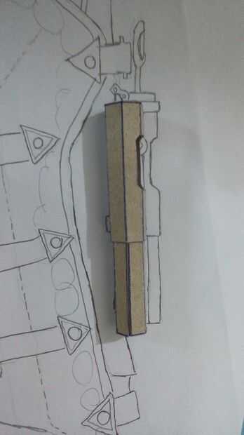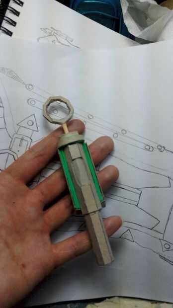 para el tamaño estoy haciendo... El hexágono con los lados de 7mm es perfecto para el cañón principal... laterales de 6mm deben hacer justicia para el cilindro más delgado... es una parte estética, osea no hay una secuencia fija de construir puesto que no hay mucho complejo mecanismo.