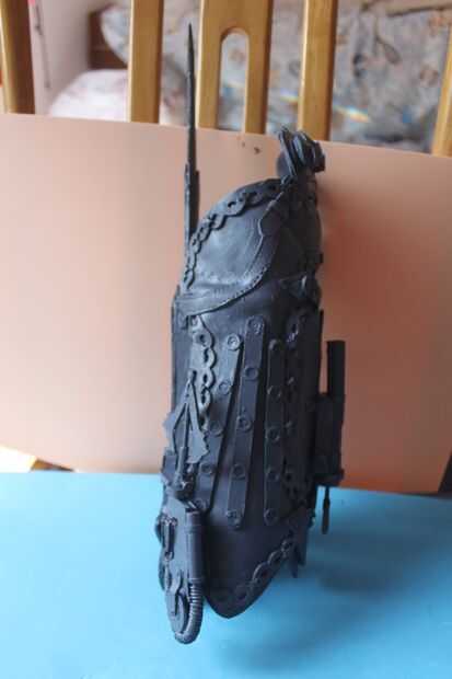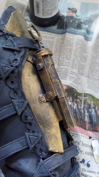 como ya he mencionado seco cepillado es una técnica difícil para perfeccionar. no soy muy bueno en ello, pero en posición para dar consejos, no quieres exagerar! dejar parte de la capa base de gris en las caras, mientras más oro pintura en los bordes! Esto aparece el formulario en 3d.