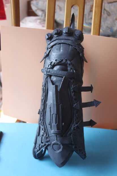 Pruebo pintado la parte de nudillo al principio... el cuero profundidad de color fue alcanzado por gruesas capas de pintura acrílica... pero grietas a flexión... así que me Consejo para mantener menos de 5 capas en la parte de espuma.