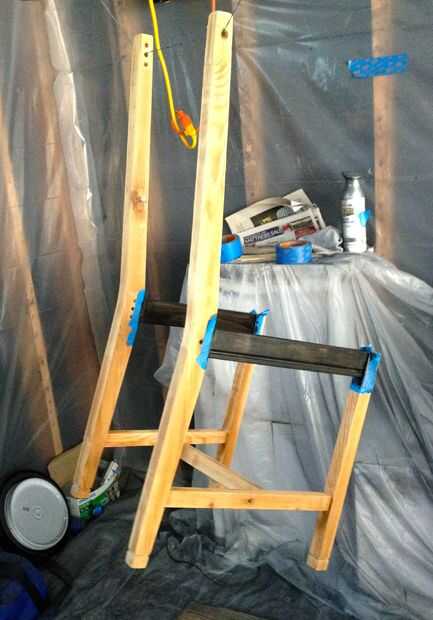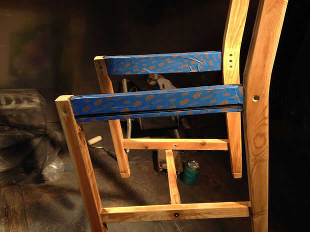 Ahora quieres enmascarar sobre el área manchada y asegúrese de que la cinta se fija en todos los lados y al ras por lo que ninguna pintura se escapará entre la cinta y la madera.