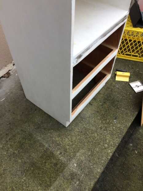 Lija la inacabada y la mesa, aunque yo no la arena del todo la pintura vieja - asegurada a la superficie fue incluso. El segundo pintado previamente dresser lavados, pero no la arena. Era curioso cómo sería la mancha sobre el acabado de pintura de aceite.
