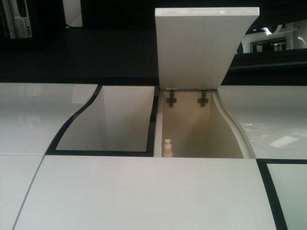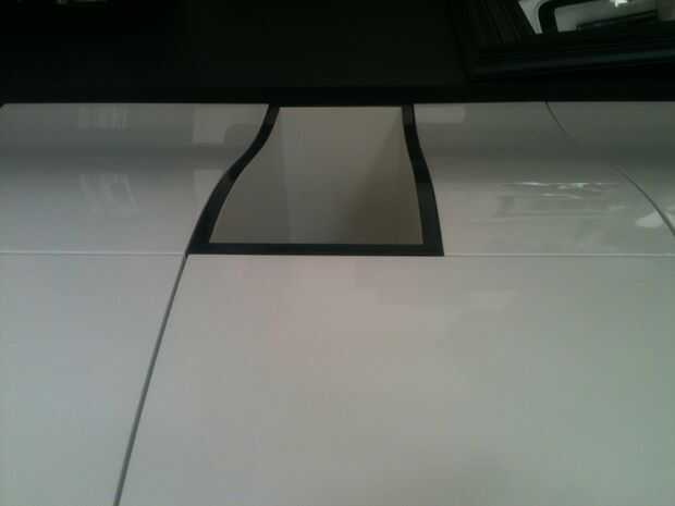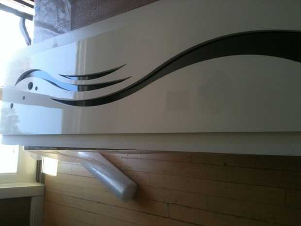 Foto #7 el lado acabado, poner laminado plástico brillante detrás del corte salidas