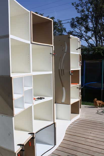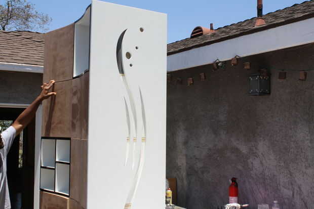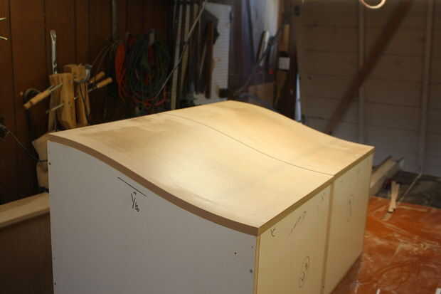 Foto #2 marcó el perfil completo de los armarios en madera contrachapada de 1/2" y luego recorte la plantilla con una sierra de banda, utiliza una lijadora de banda para suavizar las asperezas, de esto pude poner el perfil de la puerta.