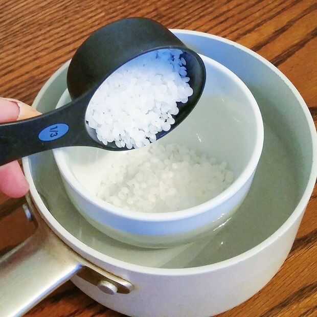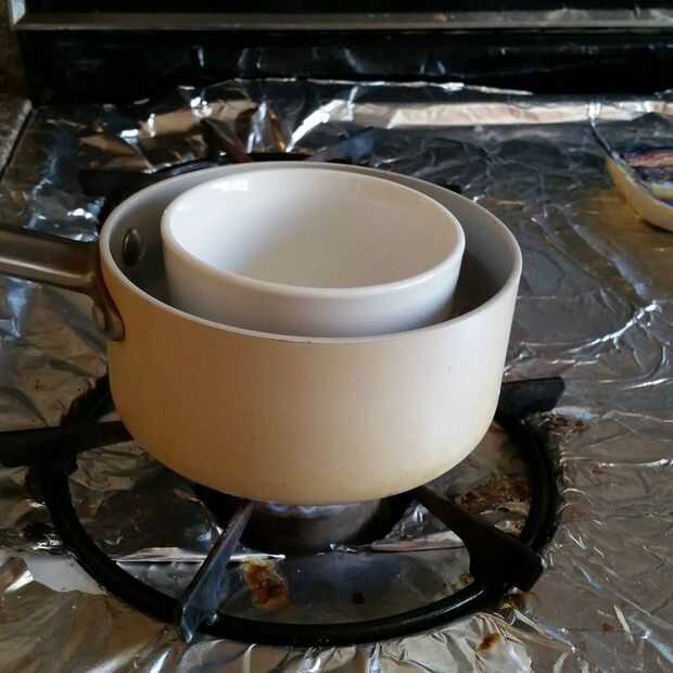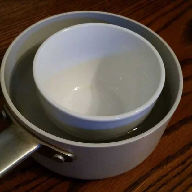 En primer lugar, coloque el recipiente pequeño dentro de la olla.