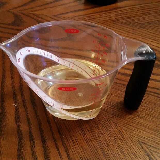 En sexto lugar, vierta 1 taza de aceite de nuez en la jarra de medición 2 taza y calentarla en el microondas durante 45 segundos.