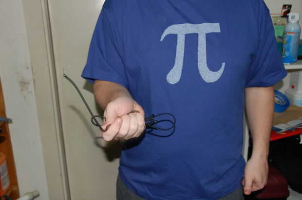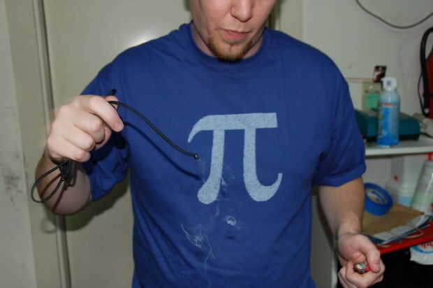 Están girando el extremo fundido de una pieza ardiente de una cadena de plástico/nylon.