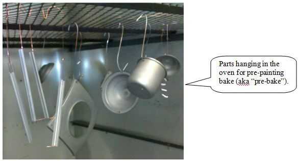 • Agitar manualmente cualquier agua agrupados a lo largo dentro de los bordes, luego transferir la parte en un alambre de metal limpio con gancho de los pescados pequeños lazos en ambos extremos. Hacer el alambre lo suficientemente largo para que puede agarrar el cable sin riesgo de golpear la pieza con un guante de horno.