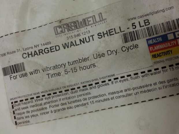 Usé las cáscaras de nueces como los medios de pulido. Simplemente lanzar allí y volver en unas horas.