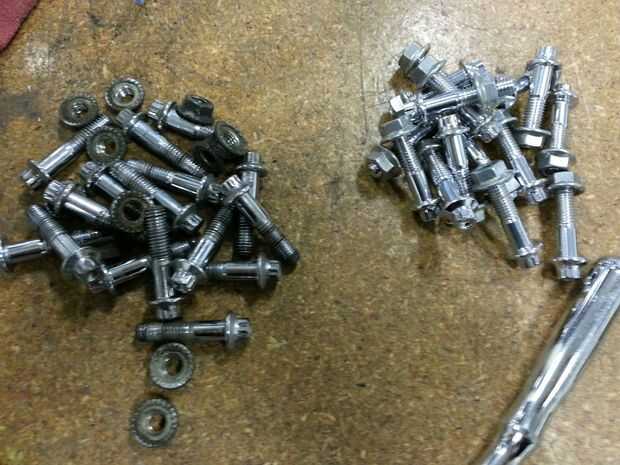 Puede realmente dejas en el vaso como usted quisiera, pero he encontrado que sólo tarda unas horas hasta que salgan limpiamos. Como se puede ver, hay una diferencia de noche y día después de caer. Siempre Enrosque las tuercas en los pernos, para asegurarse de que no he salido de las tuercas o los pernos, ya que pueden perderse bastante easliy en las cáscaras de nuez si no eres cuidadoso.