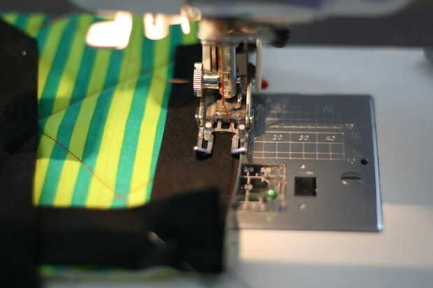 Tal vez es mejor un escaso cuarto de pulgada. Pero coser todo, dejar 1/4" de la esquina y a partir de otra vez 1/4" cuando de la vuelta. No quieres coser sobre el oído de la tela en la esquina porque entonces no se puede voltear y girar.