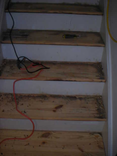 Soy algo perfeccionista, así que esto me tomó mucho tiempo. Todavía hay algunos lugares donde la vieja mancha impregna profundamente. En varias de las escaleras más bajas, hay líneas de puntos donde las grapas debajo de las escaleras abrieron la madera a la mancha. Siempre se ven "reformado" en lugar de nuevo, pero se miran bien y tener carácter.