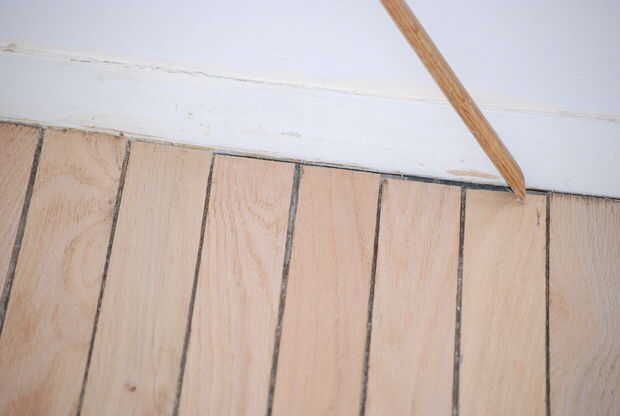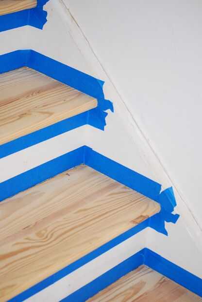 Luego grabado cuidadosamente alrededor de la madera. Soy un gran creyente en el taping buena. Nunca he hecho un piso antes, pero he pintado muchas cosas. Y encintado bien puede ahorrar un montón de problemas por el camino. Dicho esto, no temo sobre la extraña caída de mancha o de poliuretano, como voy a pintar la moldura y corte pronto.