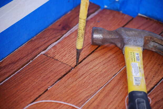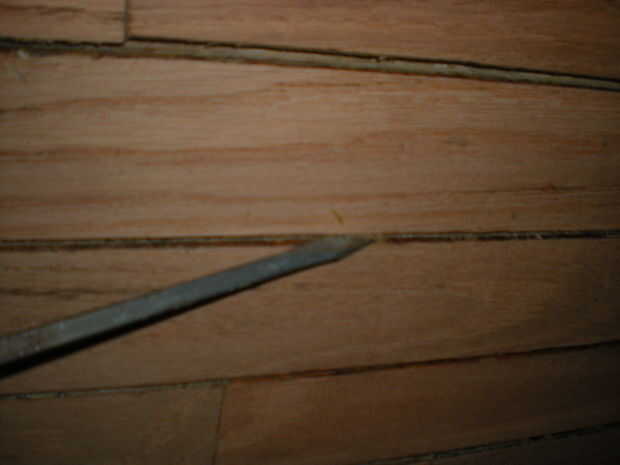 2. no fue hasta que estaba casi a la pared del fondo que me encontré con un problema. Un par de juntas fueron muy cerca, demasiado cerca para la cadena, y las lagunas adyacentes eran extra anchas. Yo había notado que cuando fui raspar hacia fuera entre los tableros que podría mover hacia adelante y hacia atrás un poco. Utiliza una sonda y aprovechado muy suavemente en la grieta hasta que la Junta Directiva. Parecía mucho más incluso y tanto mejor, que he decidido utilizar mi método de cadena para fijar el suelo. Usé la sonda para abrir las tablas, entonces se presiona un pedazo de guita profundo en la grieta, sosteniendo las tablas aparte. Entonces corrí a la pieza superior de guita para terminarlo. Las lagunas niveladas fueron una mejora en el que volví sobre el suelo y reparar algunas otras secciones.