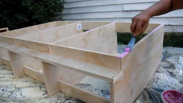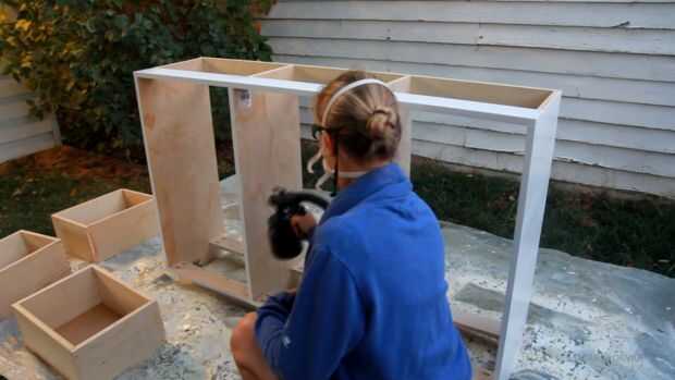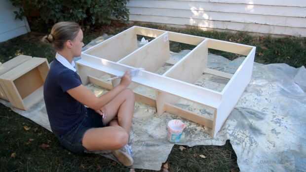 Primera, la base ya estoy usando algunos yeso spackle para rellenar los bordes visibles de la madera y luego lijar suave una vez que se seca. A continuación estoy pintando los bordes y he puesto alguna cinta en el interior, porque voy a transparente que. Así pintar la parte inferior y los lados con pintura plana y luego retirar la cinta, y le he metido las líneas agradables. A continuación tengo claro todo, capa sobre las zonas pintadas e interior para dar protección. Y yo realmente como usar agua poliuretano cuando vayas sobre pintura blanca, debido a base de aceite puede Agregar un tono amarillo.