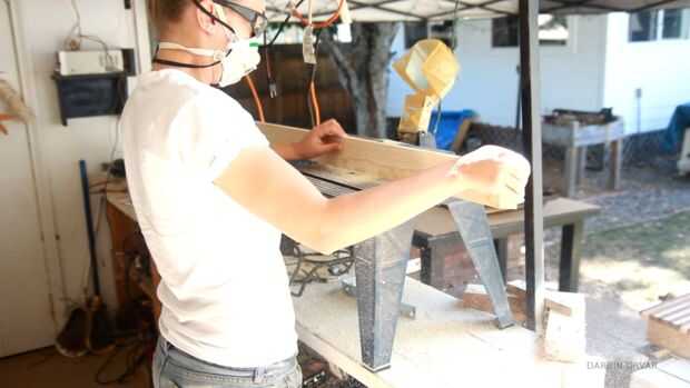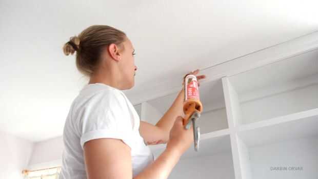 También corté encima de una tira fina de madera para ocultar esa pequeña brecha entre el contador y el respaldo, y que generalmente es un buen consejo - si tienes un pequeño espacio o imperfección, simplemente añadir alguna moldura. Empecé en percusión, pero rápidamente se dio cuenta de que era más fácil y rápido simplemente use la pistola de clavos.