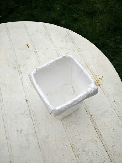 2. Coloque el papel en el recipiente en cada lado. Los papeles de cocina deberán absorber el líquido de la acetona. El objeto 3D debe ser sólo en contacto con el vapor de acetona. Podría dejar un espacio para ver lo que está sucediendo dentro.
