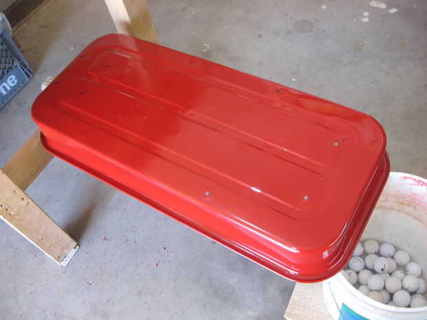 El exterior de la cama fue pintado con tres manos de pintura en aerosol rojo Regal Rust-Oleum. Dejo esta seco por un par de días.