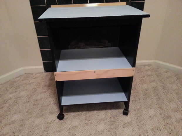 Después se terminó la pintura, vuelve a montar el carro. Me di cuenta que estaba todavía un poco inestable, así que decidí agregar un refuerzo para reforzarlo. Tenía un trozo de 3 "x 3/8" que cortar a la anchura del carro. Os adjunto esta en la parte posterior utilizando cuatro tornillos después de taladrar los orificios piloto de 1/8" para evitar el resquebrajamiento. Probablemente se Pinto en algún momento, pero por ahora estoy dejando su color natural.