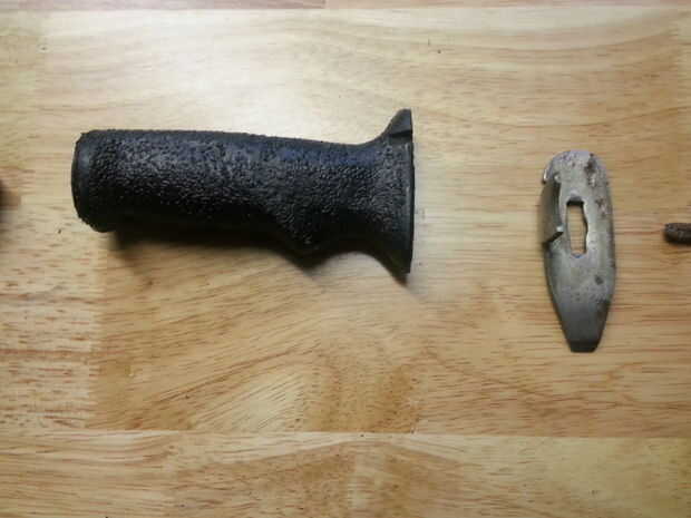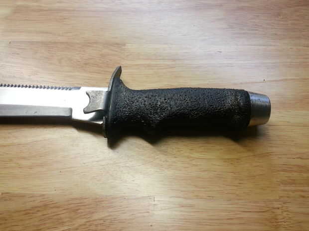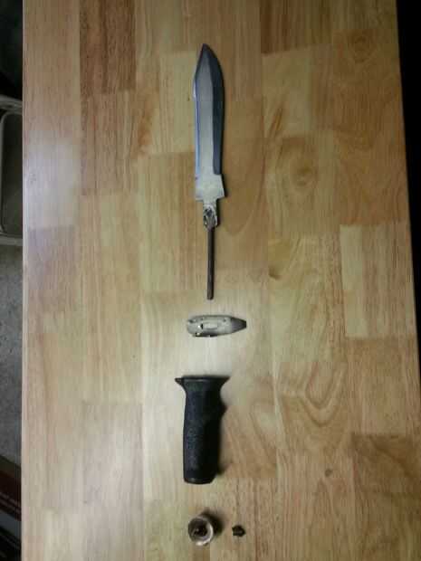 un amigo de mi hermano, querido simplemente afilar un cuchillo de su. Sin embargo, el mango era flojo, y el pedazo de pomo trasero era solo metal fundido, por lo que era muy débil y se rompió después de tomar unos columpios con él. El mango es de plástico barato. Sentí que esto necesitaba un cambio total, así que decidí restaurarlo.