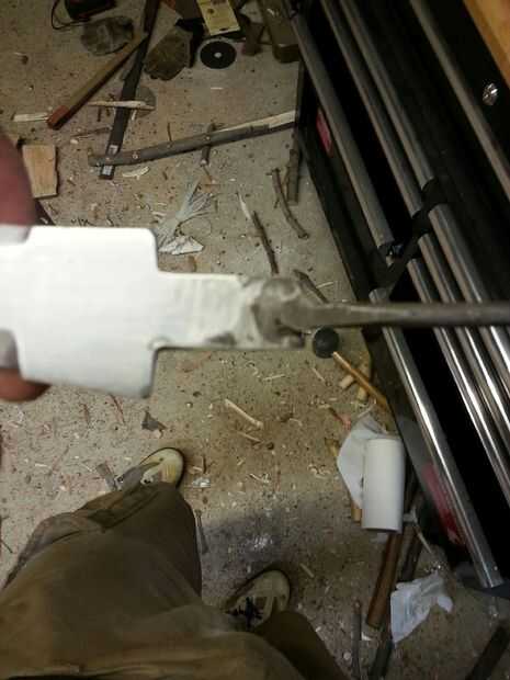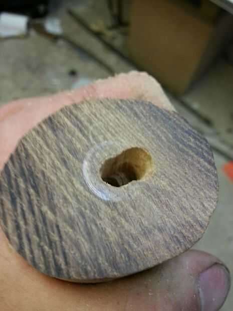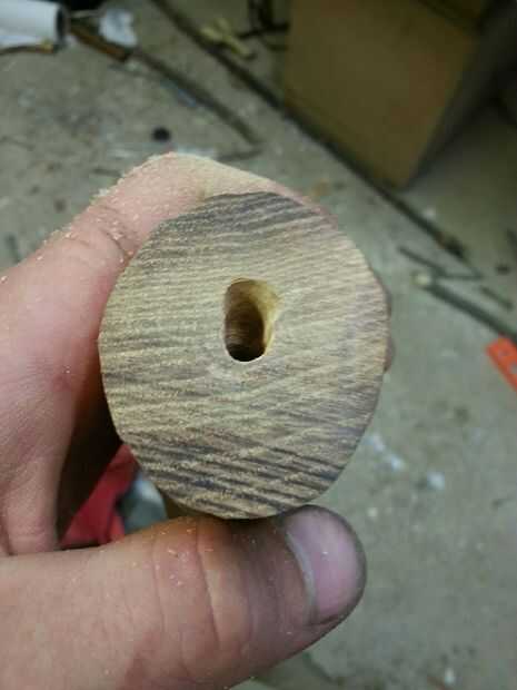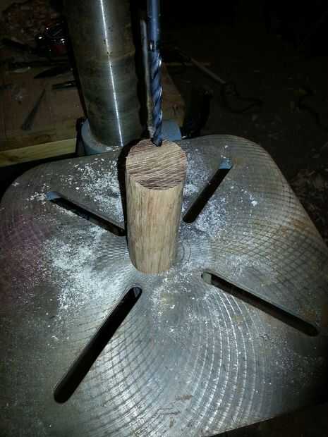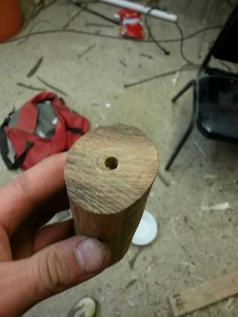 Después de eso, perforé la madera para adaptarse a la mayor parte de la espiga de la manija.