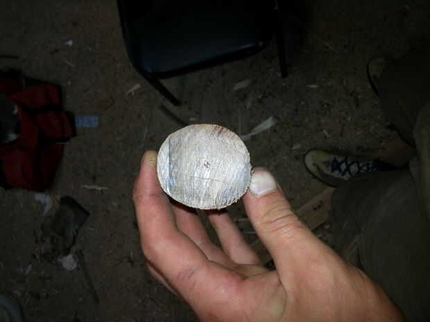 Comencé el proceso de corte el nivel de bloque, por lo que podía perforar en el taladro. Utiliza la broca más cercana al tamaño de la espiga y me fui tan profundamente como podía.