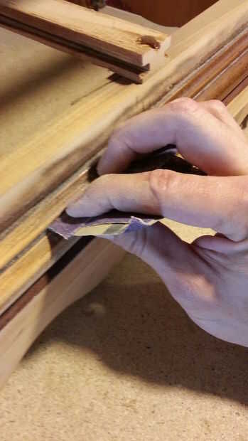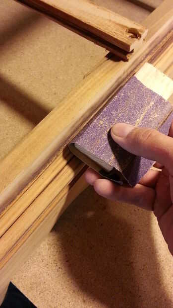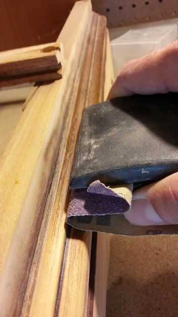 Hay un par de trucos que se puede utilizar para conseguir alrededor de la moldura sin destruir los bordes. Envolver la lija en un pedazo de chatarra que ha sido lijada a la forma de conexión de la zona que están tratando de arena, que se ajusta perfectamente en los espacios sin redondeo todo abajo.