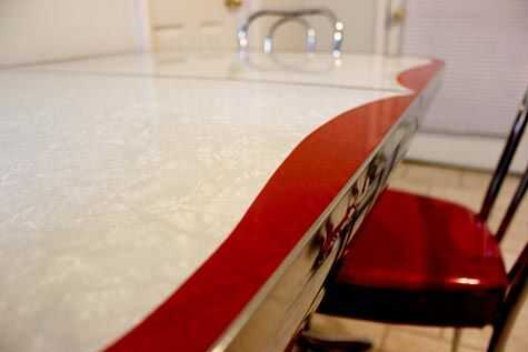 Este fue un proyecto fácil, y fue muy divertido trabajar en. La tabla salió gran. En la búsqueda de tablas como esta para darle un acabado, como las piezas de metal y mesa están en buena forma, el vinilo es fácil y barato para reemplazar. Como se puede ver en la imagen, terminamos acabado nuestros taburetes de la misma tela siguiendo los mismos pasos, y ven muy bien al lado de uno. Una nueva tabla "retro inspirado" así con 6 sillas y una hoja extraíble costaría mucho más acabado de esta vieja belleza!