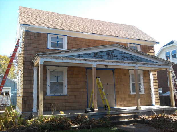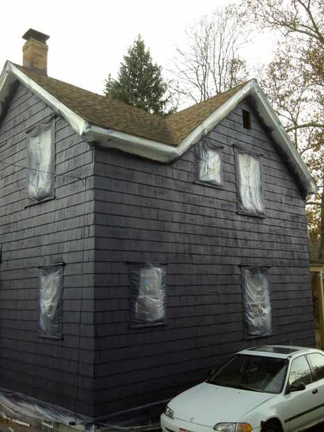 El principal error que creo que he hecho con esta primera parte de la casa era el orden en que manchado. Debe primero haber hecho todo el adorno en color blanco y luego todo muy bien y rociado con cinta azul. Al no hacerlo me crea más problemas y tendrá que volver atrás y retocar muchas partes de este lado de la casa.