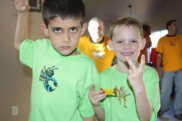 Al final de las tareas, todos los alumnos recibieron sus premios... Ganó su propio uniforme de superhéroe! (camisetas con parches de hierro de su nuevo nombre de super héroe y símbolo)
