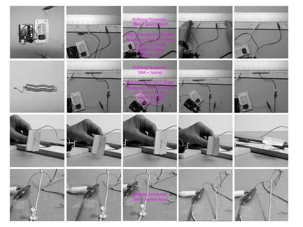 Uno de los retos en el diseño de un sistema dinámico con SMAs o flexinol es que a diferencia de los servomotores que se pueden controlar sus movimientos y la ubicación, tienes menos control de su movimiento. Un control preciso de la posición del SMA es posible pero no tan fácil.