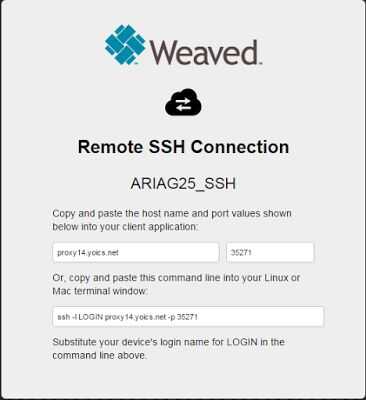 Si no tienes el ARIAG25, pero quiero hacer una prueba, por favor, Regístrate en developer.weaved.com y envíenos usted teje ID que compartimos mi ARIAG25 para hacer pruebas.