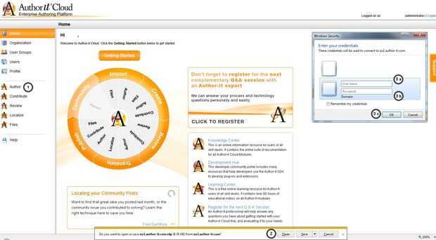 c. después del carga autor de nube de autor-it pop-up desaparece autor-it es accesible.