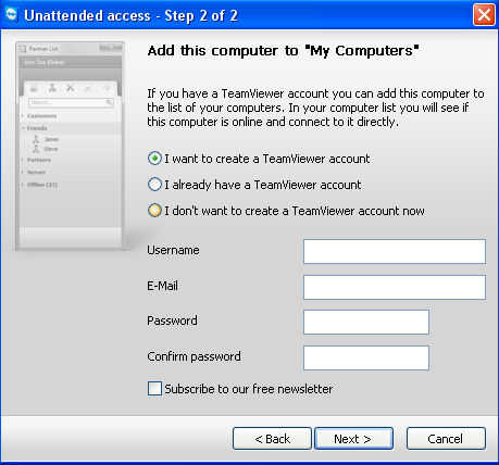 En este proceso usted puede elegir si desea crear su propia cuenta. Si usted tiene su propia cuenta, usted tendrá una lista que puede ver y computadoras que están en línea.