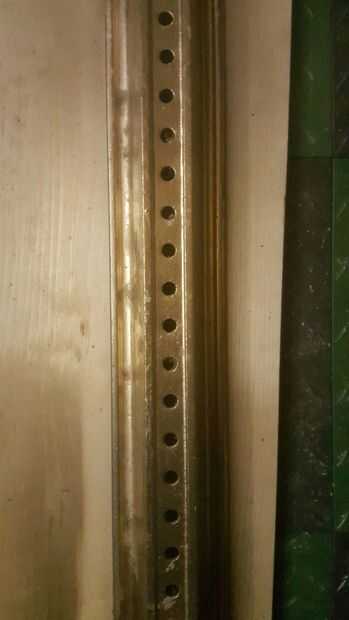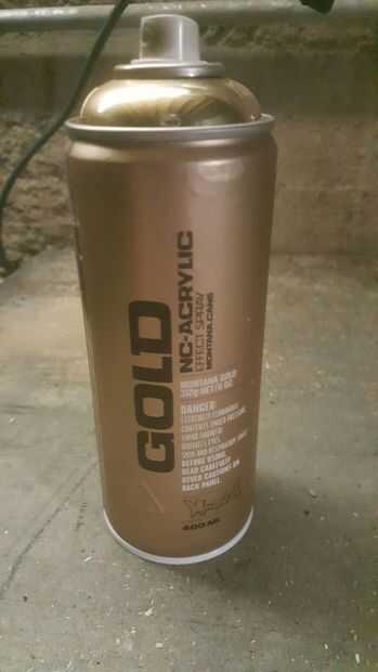 El post que estoy usando es 149,5" de largo. Esto funciona para mí porque quiero el aparato funcionando a lo largo de la longitud de mi mesa de trabajo. Limpiado el post tanto como pude y luego he utilizado dos capas de un spray acrílico oro de Montana. Compré la pintura en ebay. Cuesta mi 33 $, más gastos de envío para dos latas pero necesitaba solo se puede para dos capas.