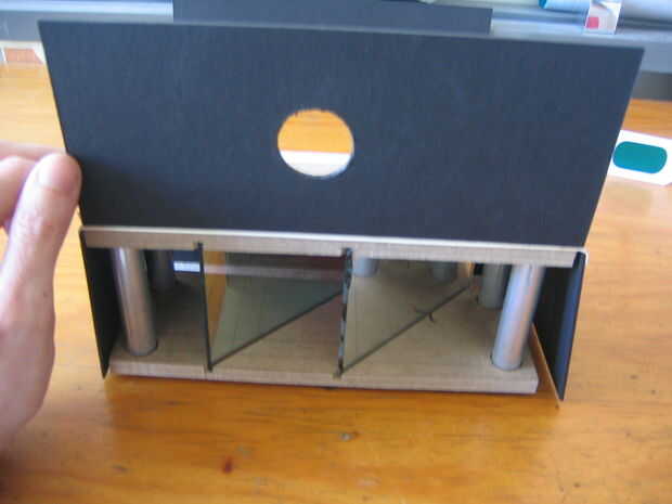Inspirado por el accesorio de cámara 3D anaglifo!Accesorio de cámara 3D anaglifome gusta hice algo muy barato para las cámaras de teléfono móvil.Una cosa elijo mal desaparecido su vidrio (vidrio de 22 X 30 mm) no rayo separador vidrio resultado no vi