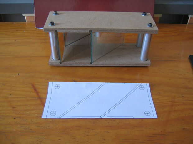 Imprimir la plantilla de www.gibbondesign.com/anaglyph.pdf en una hoja de papel de tamaño A4 (también puede imprimir en papel de 8.5 "x 11" y la escala con el tamaño correcto utilizando las dimensiones en el papel)