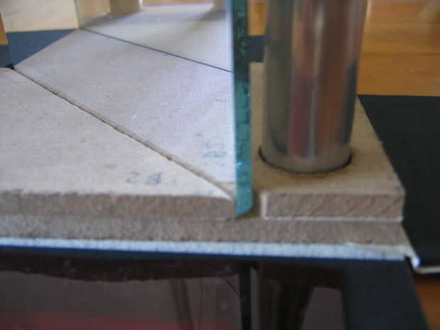 Si quieres un dispositivo más robusto, se pueden colocar separadores entre las piezas de fibra de madera de 76mm. El retículo de la plantilla puede usarse para marcar los agujeros para los soportes (yo usé un taladro de 4mm con tornillos M4).
