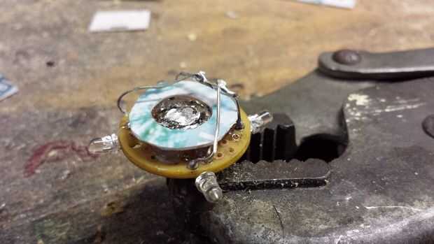 esta parte se podría haber hecho mejor, y yo puedo revisar. pero por el momento, he doblado los cables negativos en la forma que se muestra para mantener la batería y soldar todo en su lugar. puede que necesite hacer algunos creativos de flexión para sacarle la bateria para hacer un contacto seguro con ambos conductores.