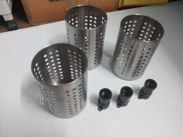 fijar los soportes de la bombilla en la lata de acero inoxidable.