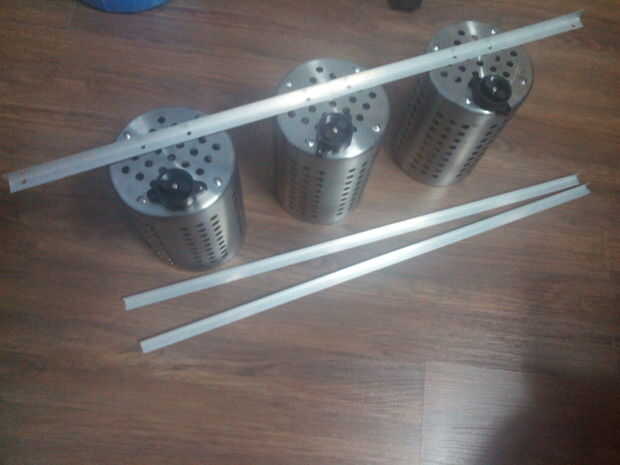 luego conecte las tres latas junto con las tiras de cortes. (si no tienes las tiras de metal, se pueden utilizar cualquier tiras de madera, se sientan bien con las latas de acero)