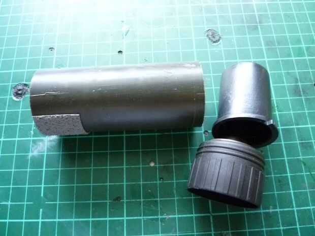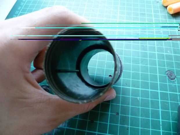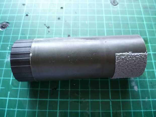 Para hacer el cebado el lanzador más fácil, asegúrese de que los dos bordes a ambos lados de la pared interna del tubo se alinean verticalmente antes de aplicar la cinta para que la mitad de ella está en un lado de la cordillera y viceversa. Como se puede ver, la cinta que usé era bastante áspera. Esto debe proporcionar suficiente agarre contra la atadura de cables del lanzador permanecer en el lugar.