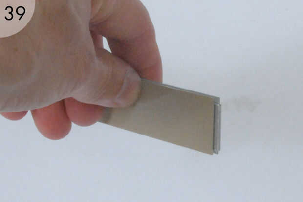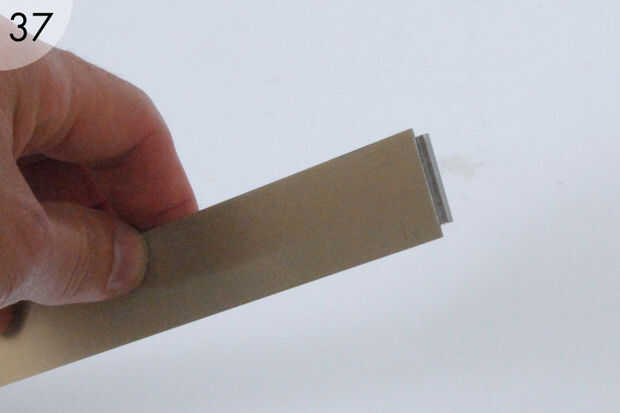 Aplicando la otra medio carril parte superior es más fácil, porque ahora puede colocar el riel medio para arriba en el borde de la mesa (38-39). Si usted completamente botch este paso, es posible pasar una navaja de utilidad entre las partes para separarlas, y usted puede intentarlo.