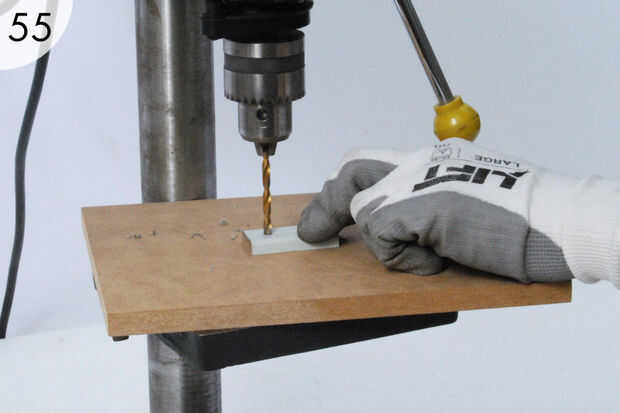 - Perfore un agujero a través de las 8 abrazaderas (55).