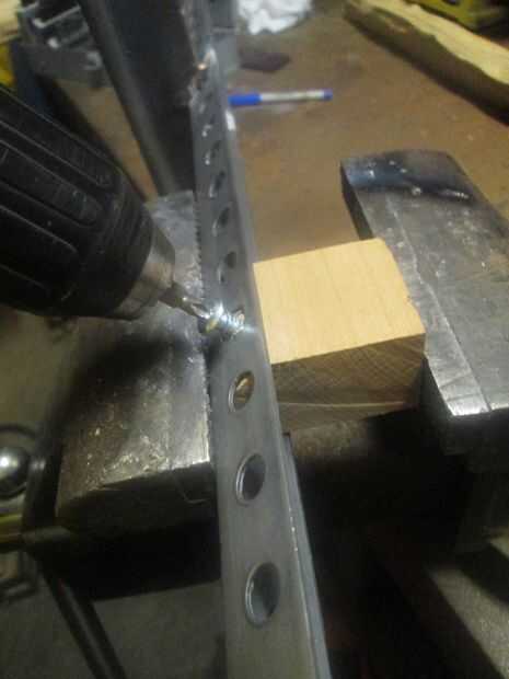 El respaldo está hecho de un trozo de roble. Es 1 1/2 ancho, unos 2" altura y 1 1/2 pulgadas de profundidad. Las dimensiones no son lo que crítica. Necesita ajuste en el ángulo de hierro y ser muy sólida. Marque el bloque ya estaba sentado en el ángulo ranurado. Taladró agujeros para tornillos de mi. Tuve algunos stubby de 1/4" tornillos de diámetro 3/4" de largo que sirve para conectar la reja al ángulo ranurado. La reja puede montarse en cualquier posición a lo largo de la longitud del ángulo ranurado dependiendo de la longitud de la pieza de trabajo.