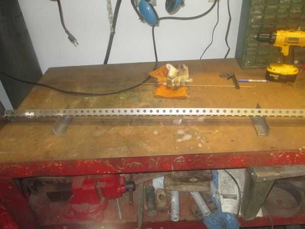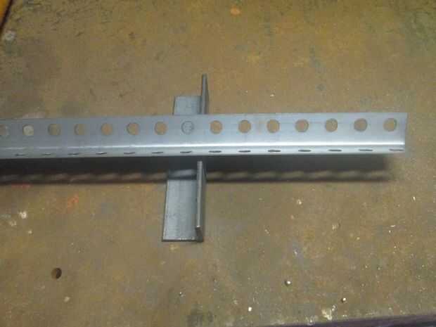 Acunó el hierro de ángulo ranurado en las muescas en las patas de ángulo de hierro. Otra vez usé el soldador del TIG para soldar las patas en lugar. Si no tienes un soldador es capaz de perforar y montar el ángulo ranurado a algunos pies de madera o bloques.
